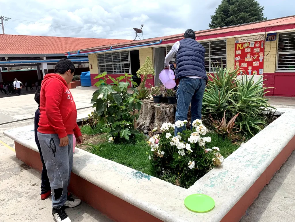 Ramírez Ríos wants his schoolchildren to develop an understanding and ownership over the water issue at the school and, as such, has given the children some level of responsibility over the water harvested from their rooftops. Walking through the courtyards that lie between the red and white brick walls of the classroom structures, one will quickly notice the series of small to medium-sized garden beds decorating the property, where everything from small decorative flowering plants to full-sized fruiting peach and plum trees, grow happily in the Tolucan sun. Ramírez Ríos has used these gardens as a vehicle for instilling a deeper understanding of the importance of sustainable water usage and the imparting of important life skills, like intentional plant cultivation, into the minds of his young students. The school is planting seeds in more places than their garden beds; Ramírez Ríos hopes that if this generation of children grow up with sustainability-adjacent ideas in mind, they will be better-suited to navigate the climate-related challenges the next century is likely to bring. He believes the Tolucan community has already begun to harvest the fruits of that labor.