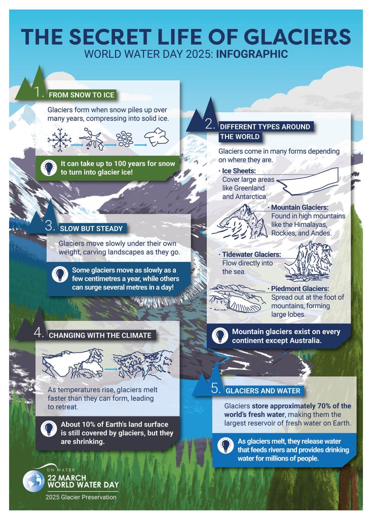 Each year, the UN assigns a theme for World Water Day to highlight specific water-related challenges. In 2023, it was Accelerating Change, in 2024 it was Leveraging Water for Peace, and this year, the theme is Glacier Preservation.