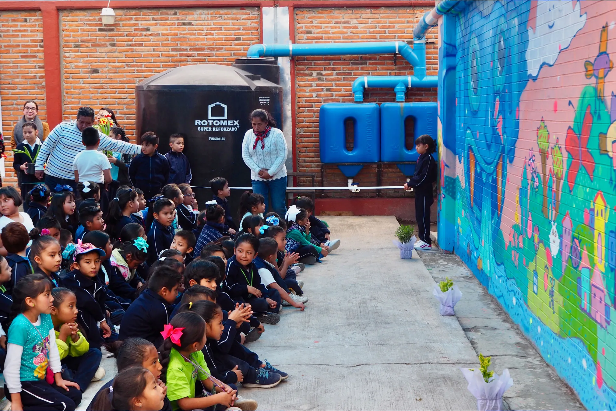 - COLABORAMOS con los directivos de las escuelas, madres y padres de familia, estudiantes y personal de mantenimiento, con el fin de impulsar una comunidad que transforme su relación con el agua a fin de darle un uso sustentable.